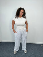 Plus Size Stripe Wide Leg Trousers Elasticated Waist with Pockets