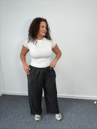 Refresh your plus size collection with these effortlessly stylish striped wide leg trousers. Designed with comfort and versatility in mind, this relaxed silhouette features a flattering elasticated waistband with adjustable drawstring tie for an easy, flexible fit. The lightweight fabric offers breathable all-day wear, while the vertical stripe detail creates a lengthening effect that complements fuller figures. Complete with practical side pockets and a loose wide leg shape, these trousers are perfect for casual daywear, holiday edits or relaxed summer styling. A strong wholesale essential for UK plus size retailers seeking comfortable, trend-led curve separates with broad commercial appeal.