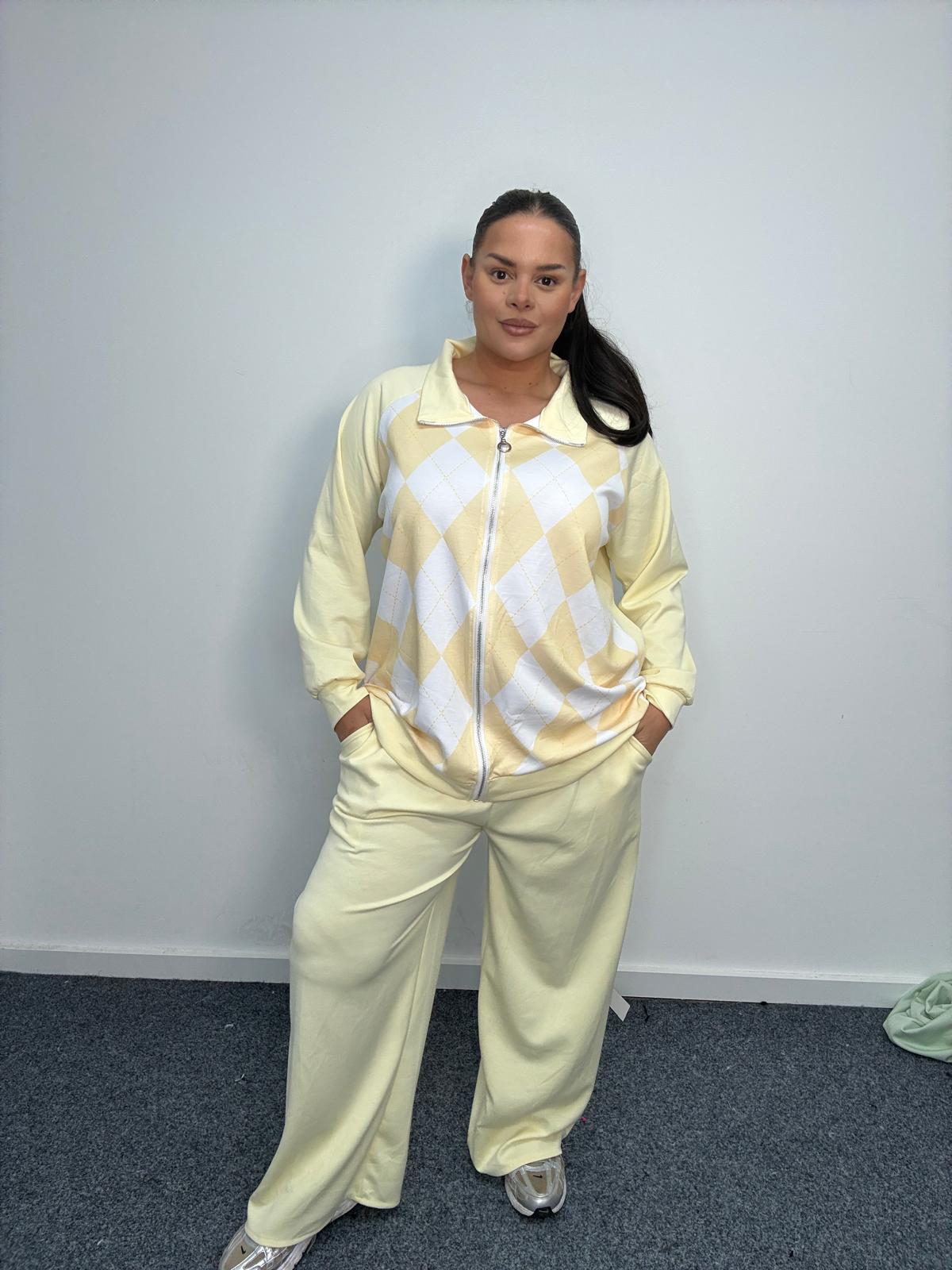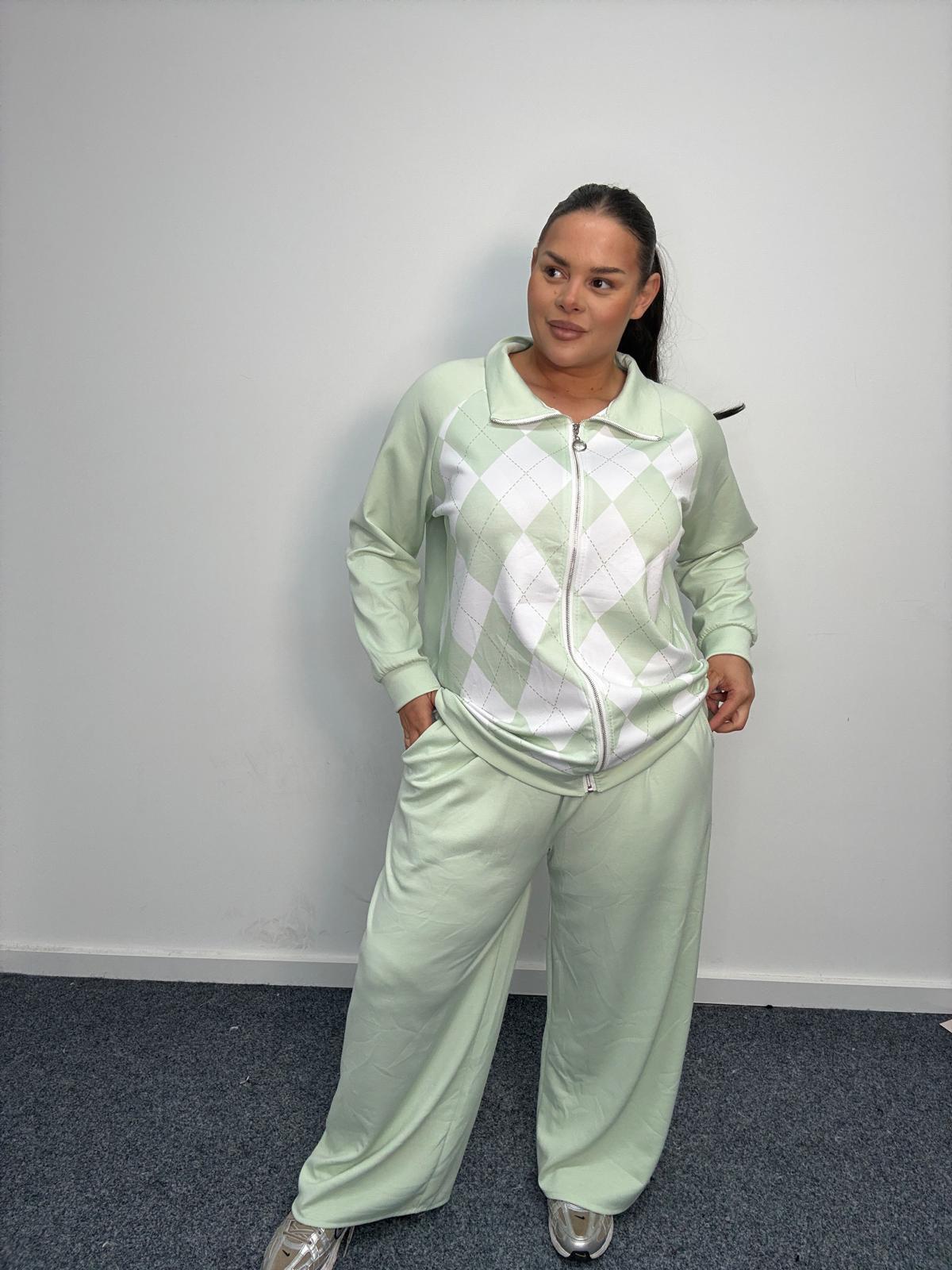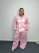 Plus Size Argyle Zip Up Lounge Co-Ord Set